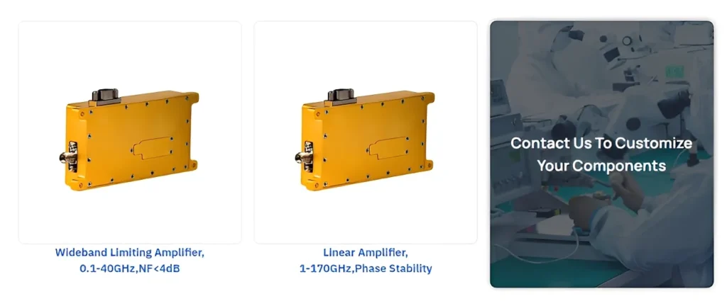| مضخمات الضوضاء المنخفضة (LNA) | نسبة ضوضاء منخفضة، كسب عالي، تشويه قليل | الاتصالات اللاسلكية، أنظمة الأقمار الصناعية، مستقبلات الرادار |