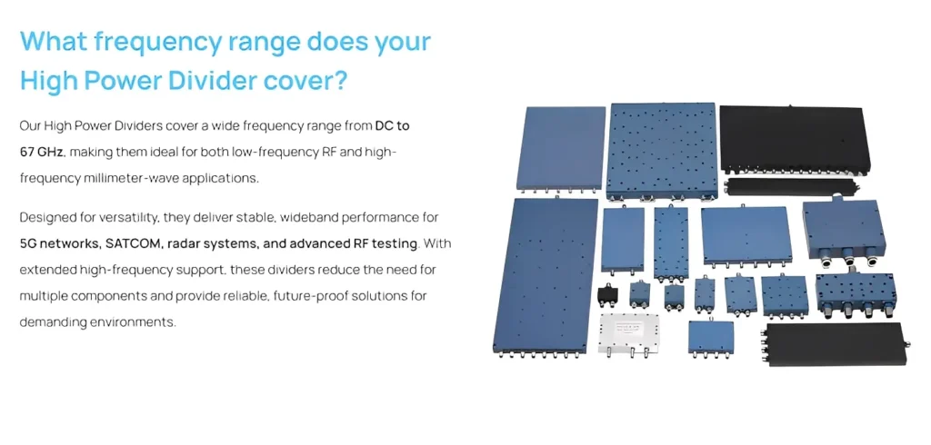 Diseñados para versatilidad, ofrecen un rendimiento estable y de banda ancha para redes 5G, SATCOM, sistemas de radar y pruebas avanzadas de RF. Con soporte extendido de altas frecuencias, estos divisores reducen la necesidad de múltiples componentes y ofrecen soluciones confiables y preparadas para el futuro para entornos exigentes.