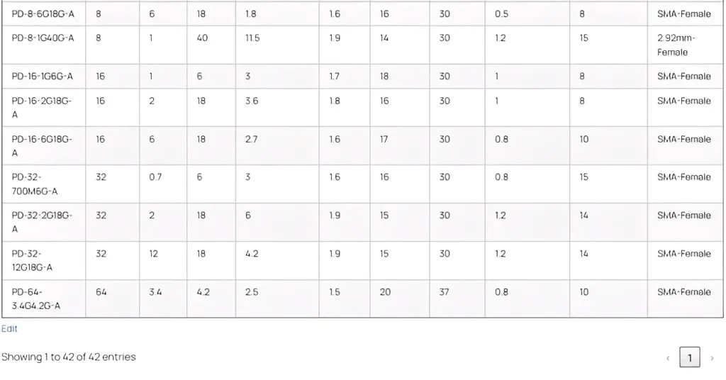 • Low frequency: PD-4-10M1G-A (10 MHz–1 GHz)
