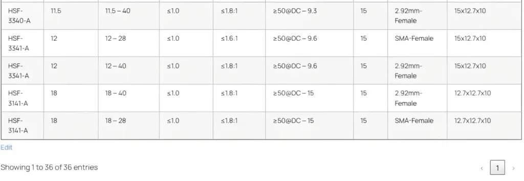 HSF-3141-A1818~40≤1.0≤1.8:1≥50@DC~15152.92mm-Female12.7x12.7x10
