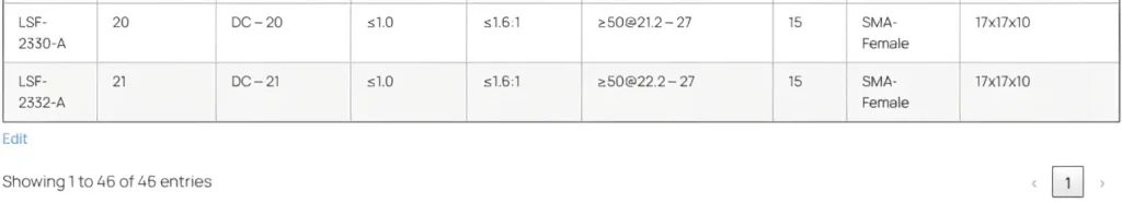 LSF-2332-A21DC~21≤1.0≤1.6:1≥50@22.2~2715SMA-Female17x17x10